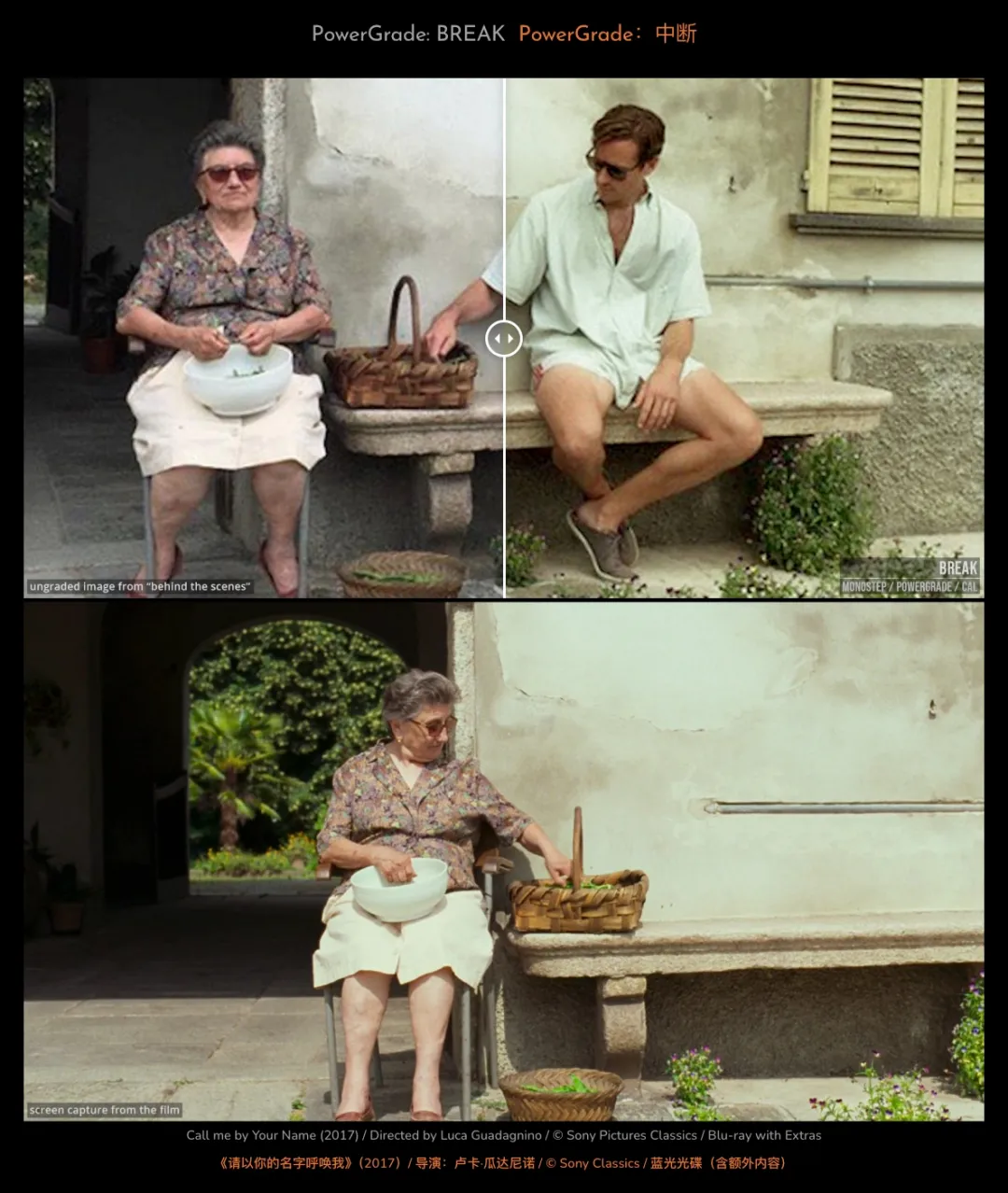 MonoNodes 电影《以你的名字呼喚我》色调模拟仿真逆向工程还原达芬奇调色节点 Mononodes Call Me by Your Name Reverse Engineered PowerGrades